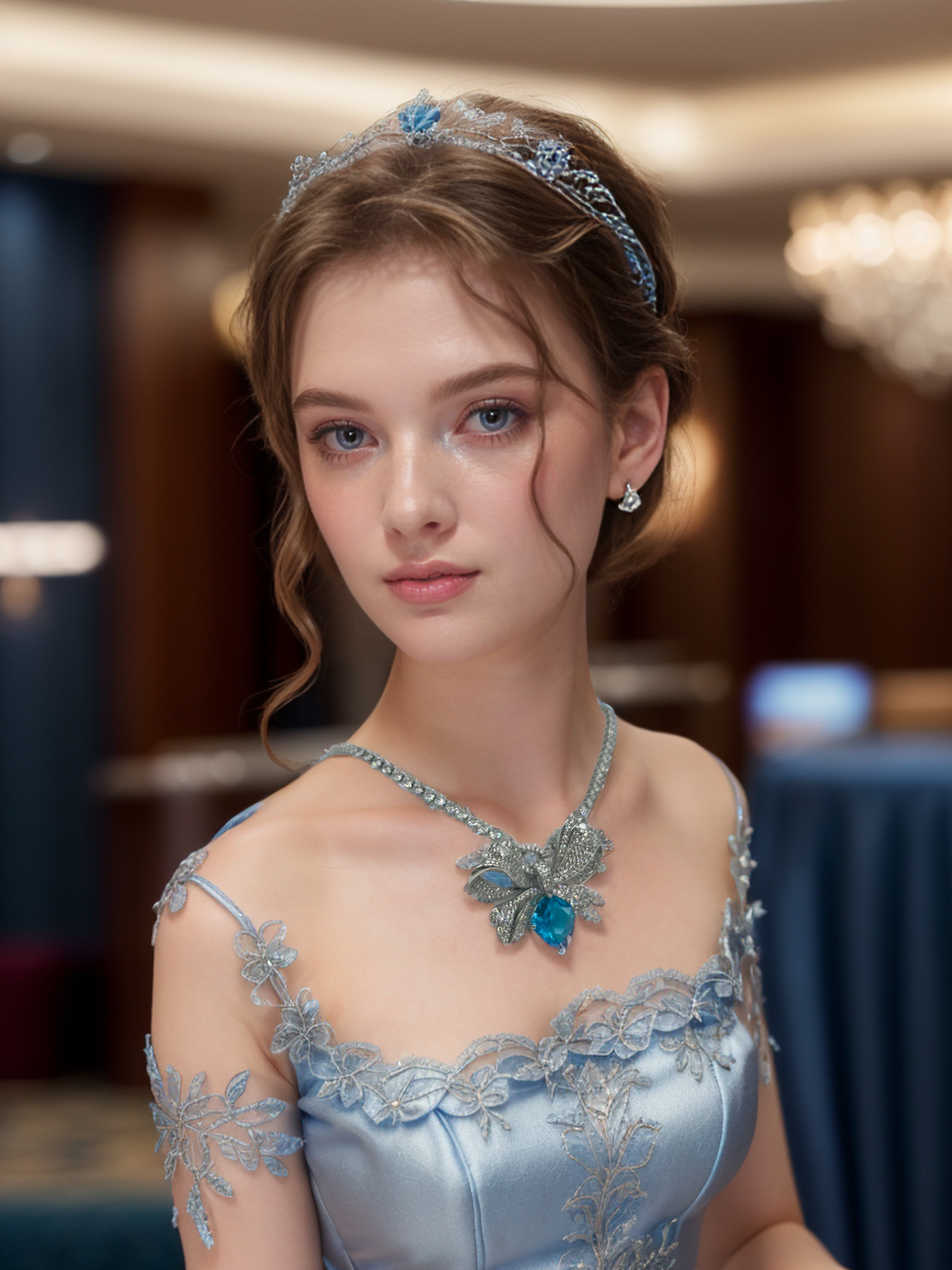 This stunning piece is crafted with meticulous attention to detail, featuring a beautiful blue crystal bow that catches the light and sparkles like a thousand stars.