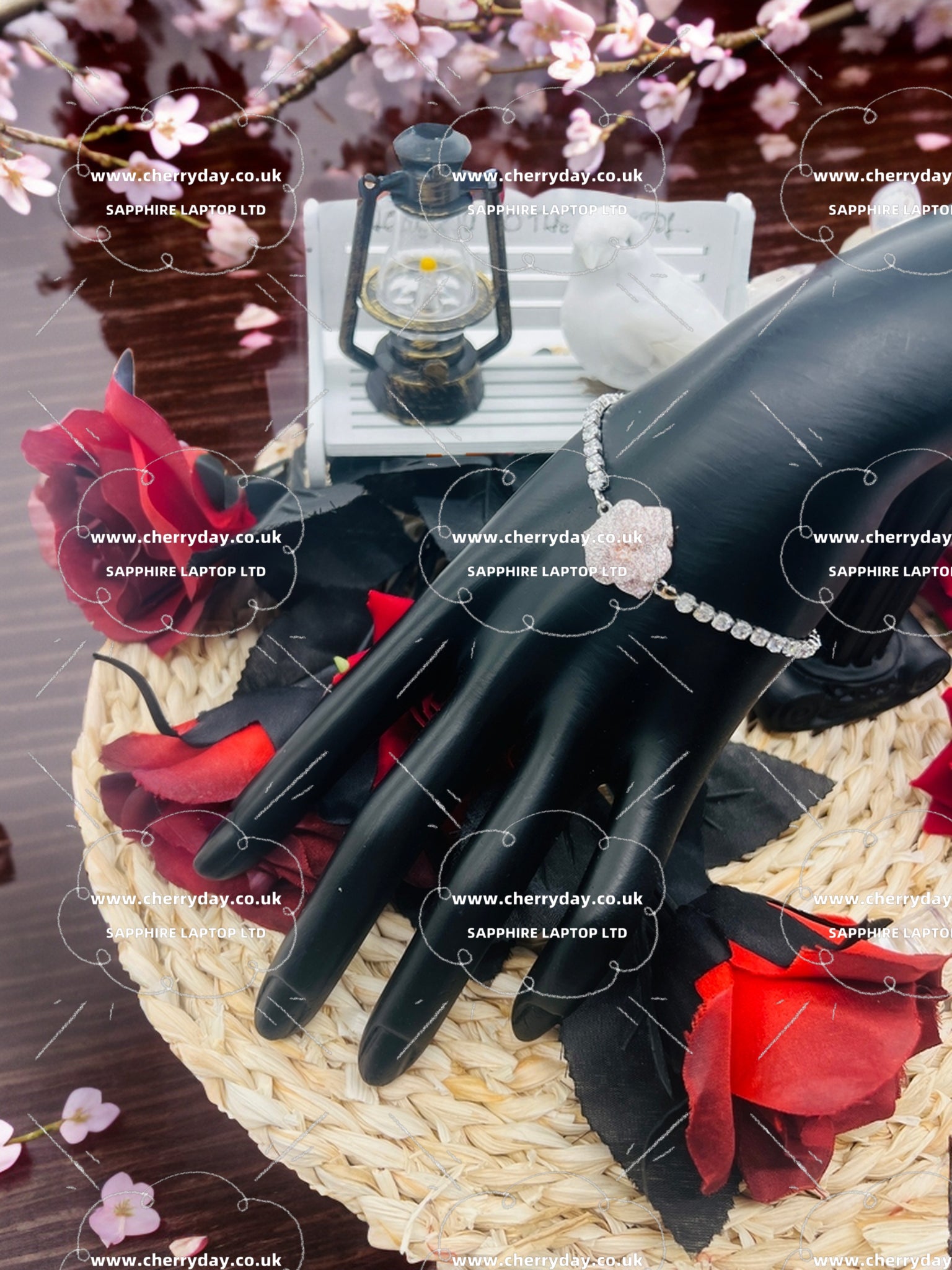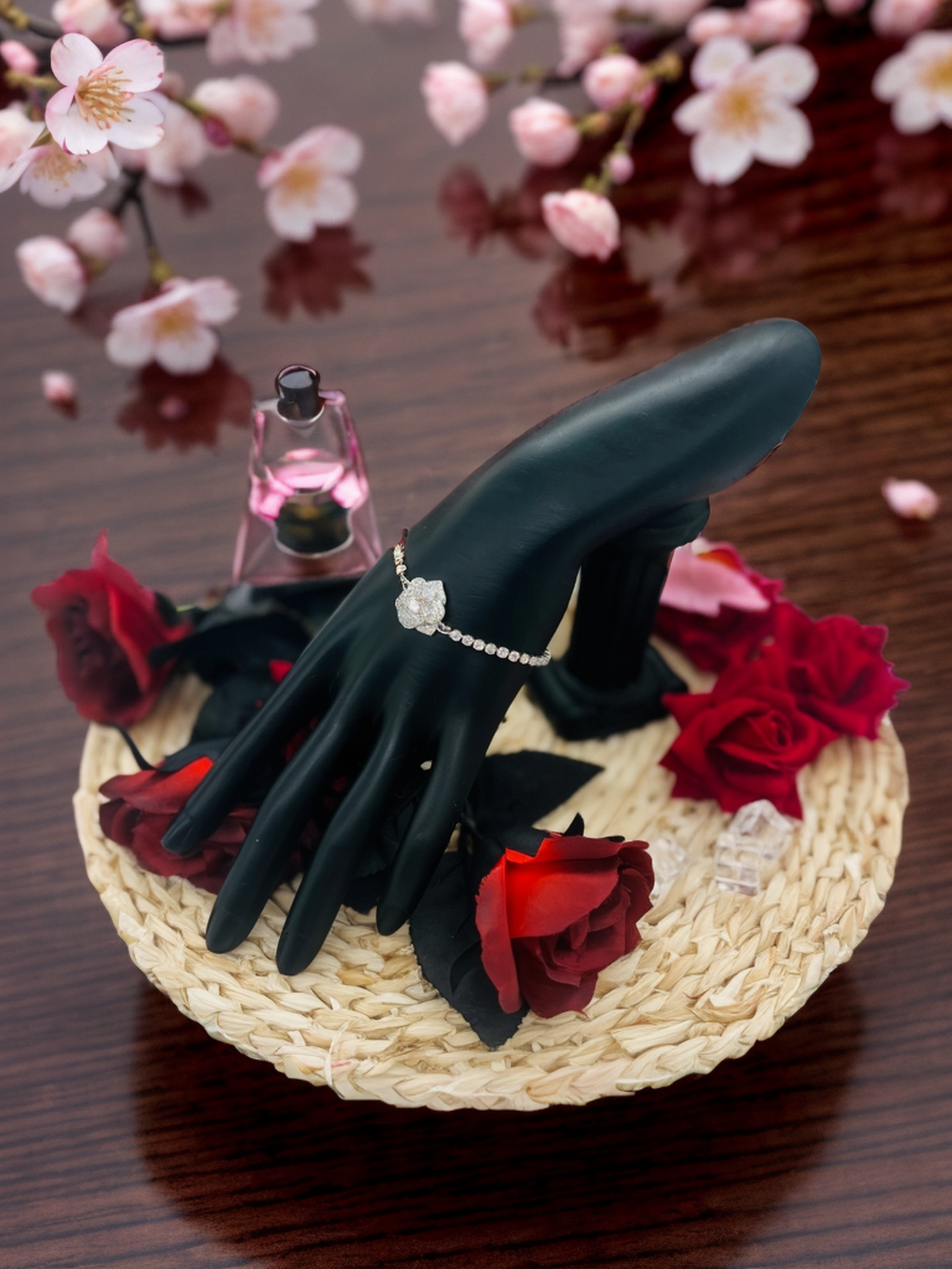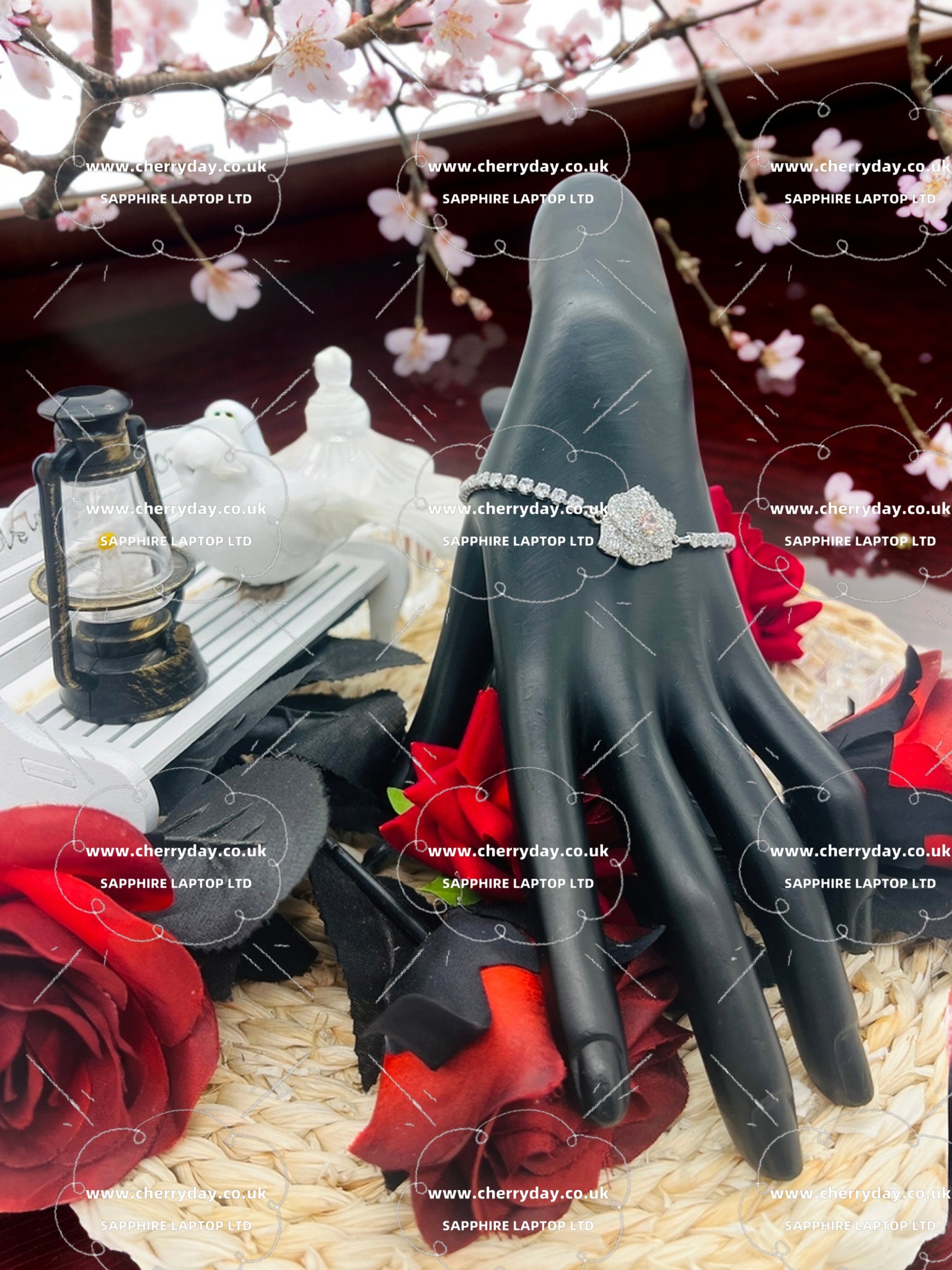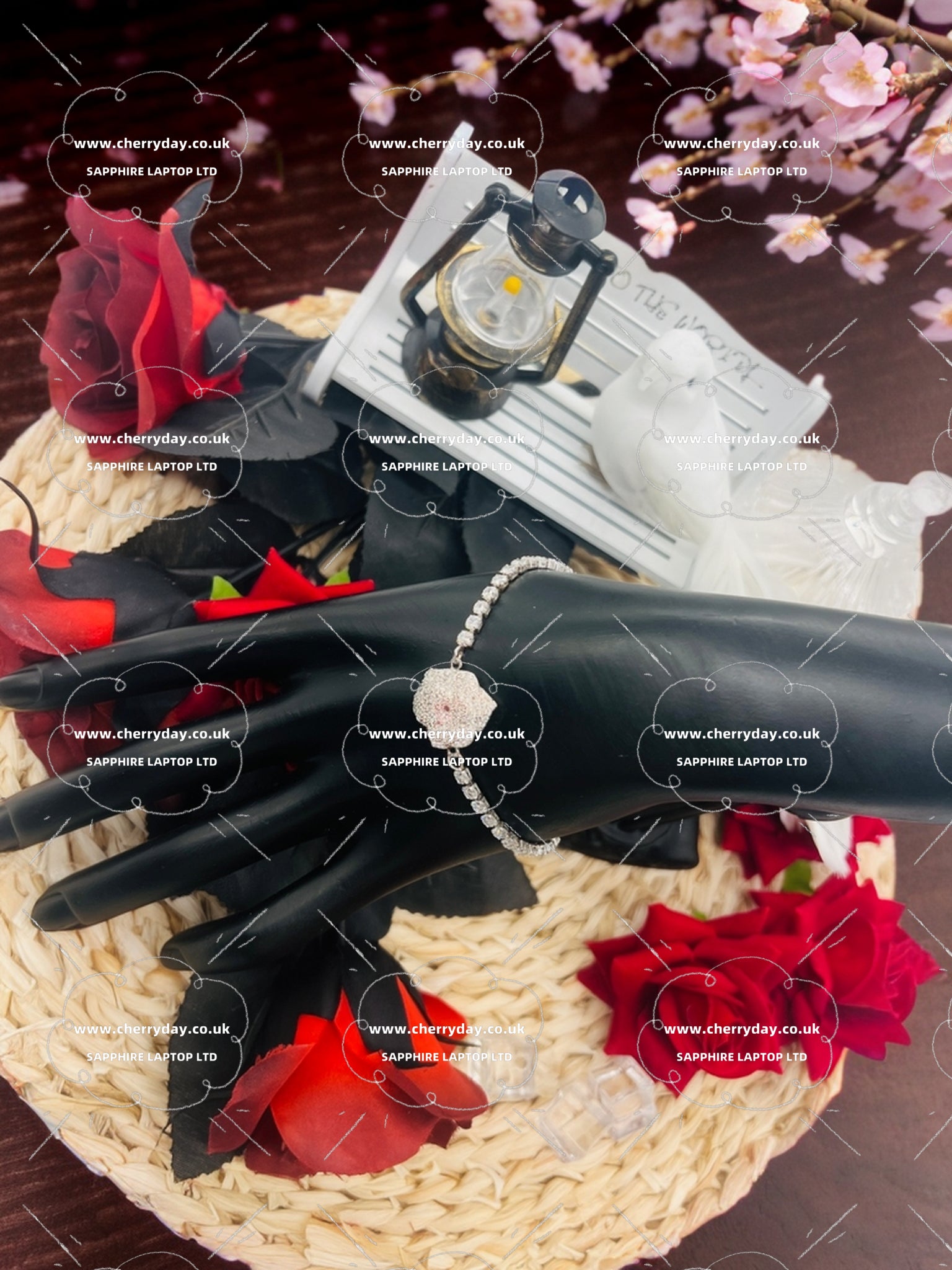 Adorn your wrist with elegance and beauty with our silver pinkish pistil rose bracelet. Crafted with intricate details and adorned with pink diamonds, this bracelet is a true statement piece. Plus, it comes with a matching ring for a complete and stunning look!