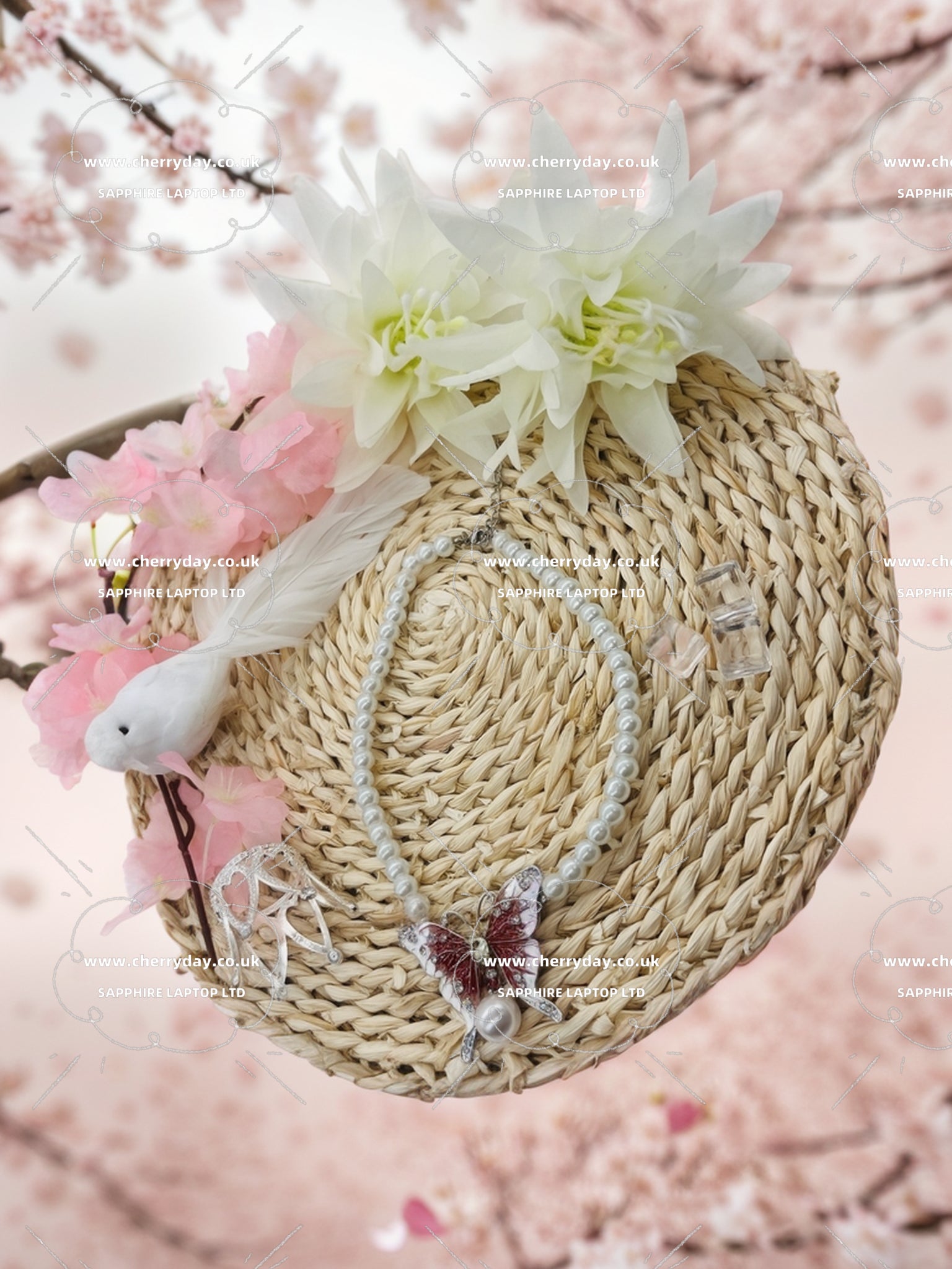 Elevate your style with our red butterfly pearl necklace. Each necklace is uniquely crafted with large red butterflies, making it a truly eye-catching accessory. Perfect for adding a pop of colour to any outfit. Embrace your inner fashionista with this must-have necklace~