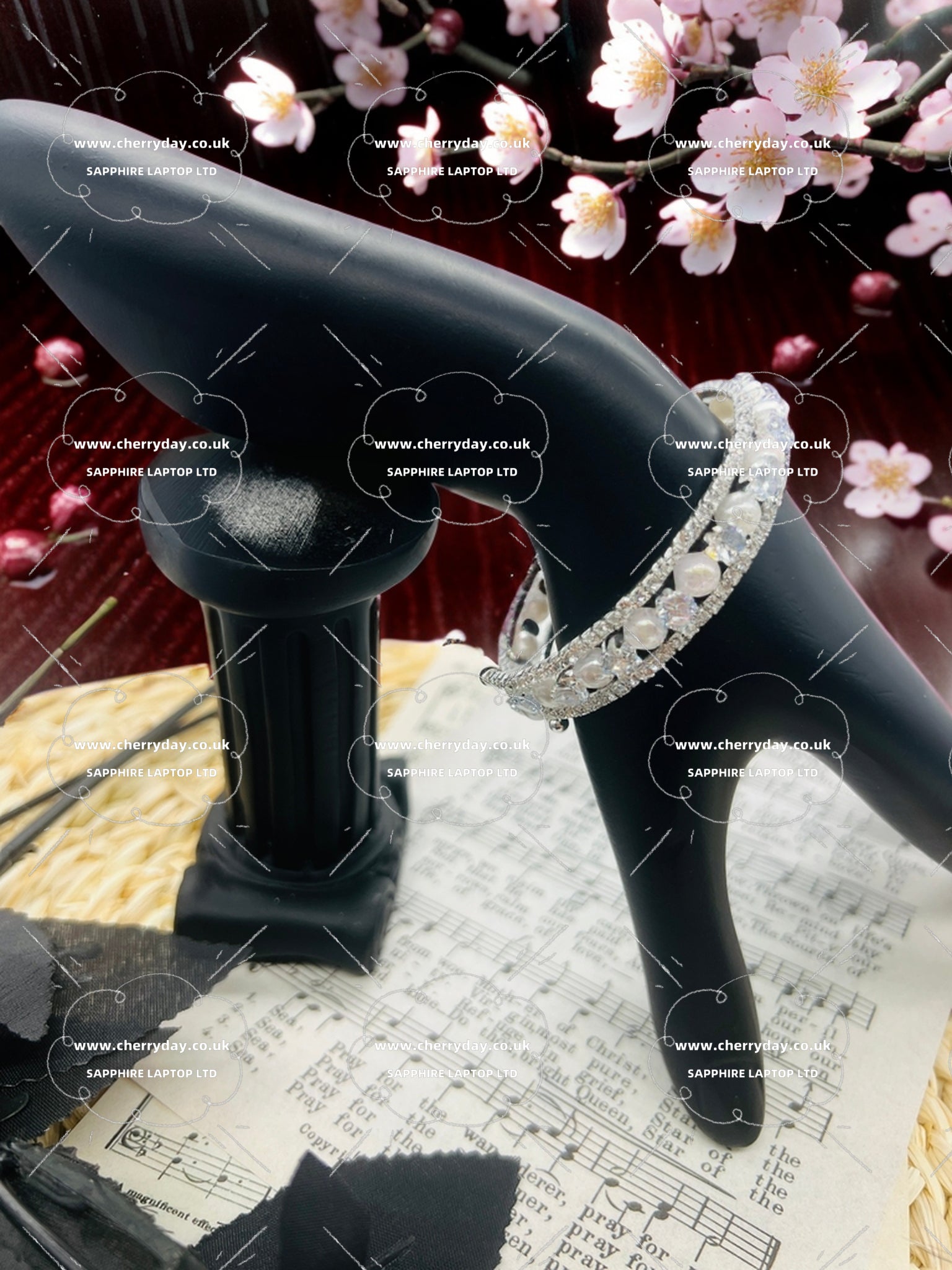 Get ready to make a statement with our Rhinestone Pearl Sandwich Bracelet. With sparkling rhinestones of various sizes, and a touch of butterfly accents, this bracelet adds a touch of girly style to any outfit. Perfect for adding a sophisticated touch to your look. It's a charming way to add sparkle to any outfit. The various sizes of rhinestones and whimsical butterfly accents give off a girly flair, making this bracelet perfect for any occasion. Bring a touch of sophistication to your style!