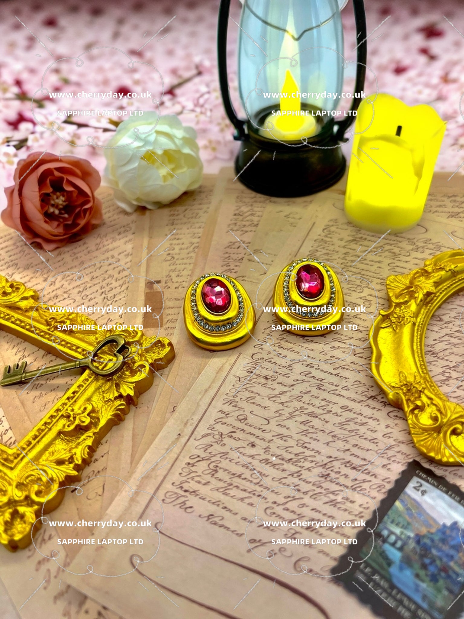 Enhance your elegant style with these Ruby drop vintage earrings. The pink diamonds atop the gold shells add a touch of sophistication, making you feel like royalty. Perfect for any occasion, these earrings will elevate your look and bring out your inner Barbie Queen.