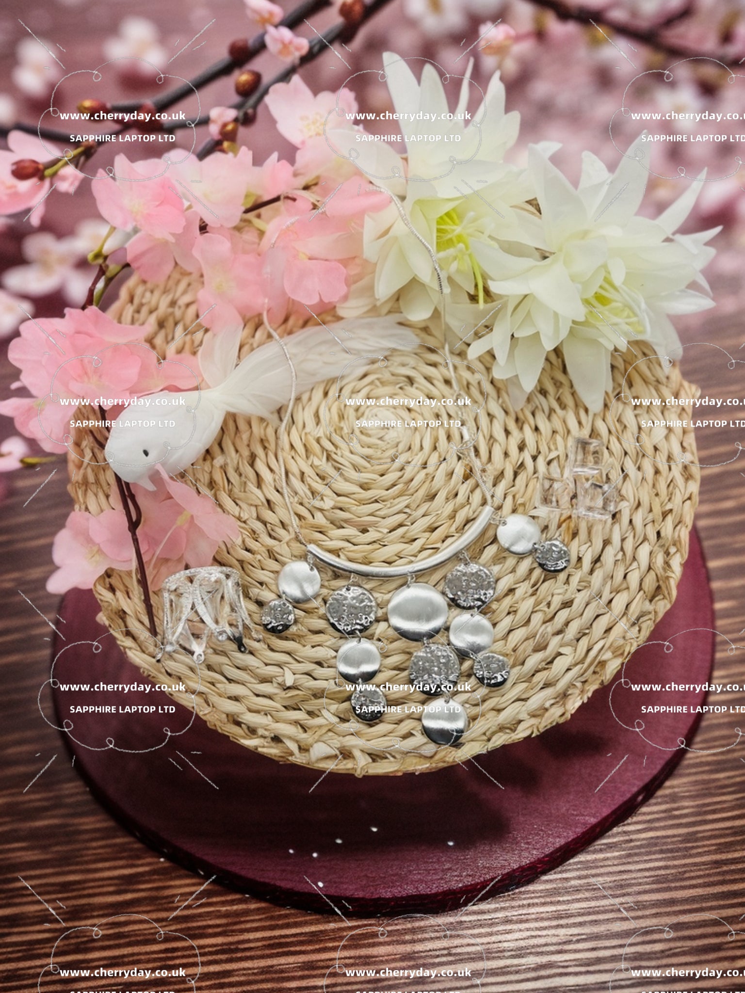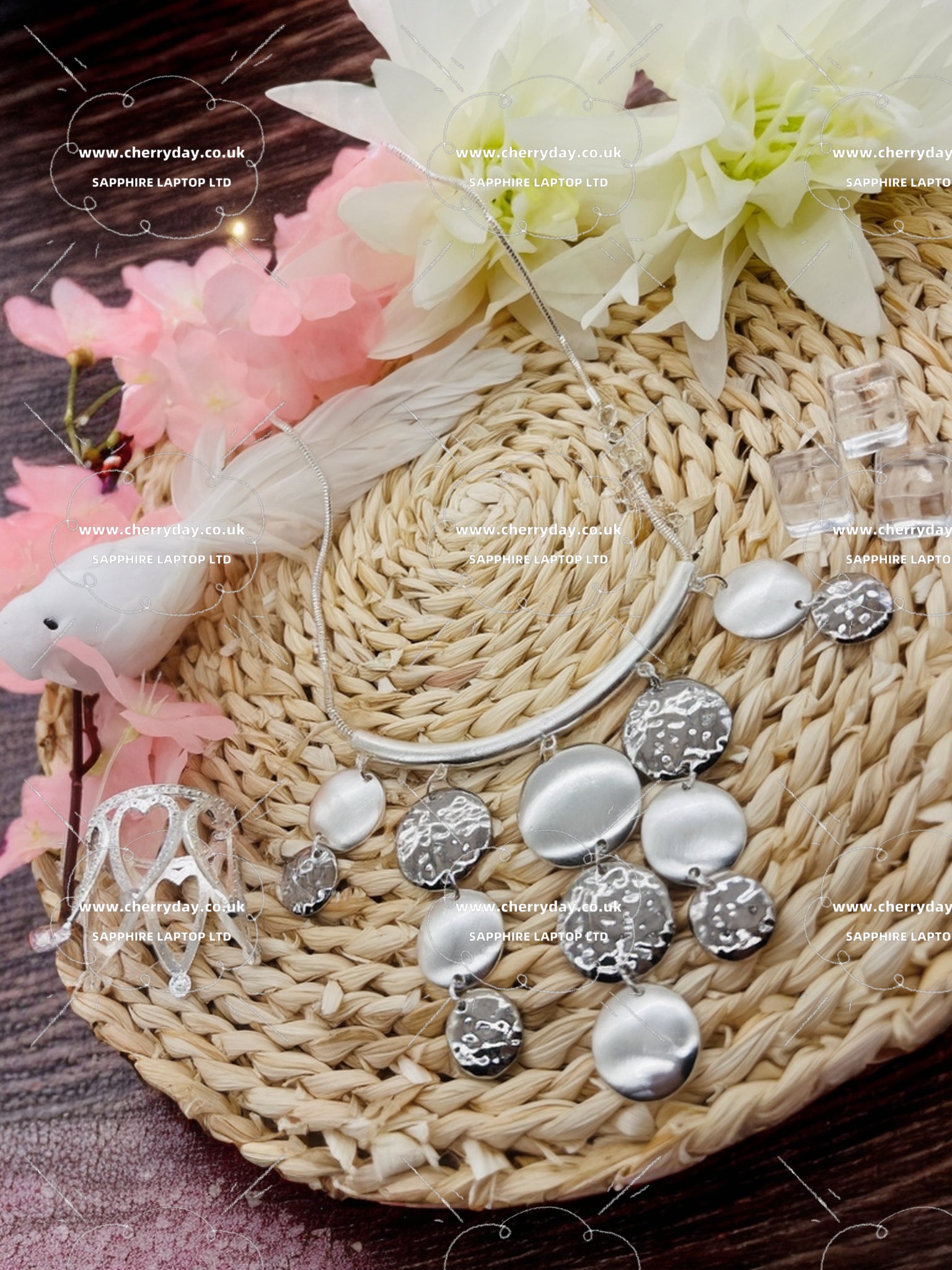 Spice up your look with this silver circular metallic tassel necklace! Made of round metal pieces in a tassel shape, it's the perfect accessory for casual outings and dates. Stay cozy and stylish with this unique piece of jewellery. Add a touch of silver sass to your wardrobe - every tassel tells a story! This necklace is sure to turn heads wherever you go. Versatile enough for any occasion, it's sure to be your new go-to accessory.