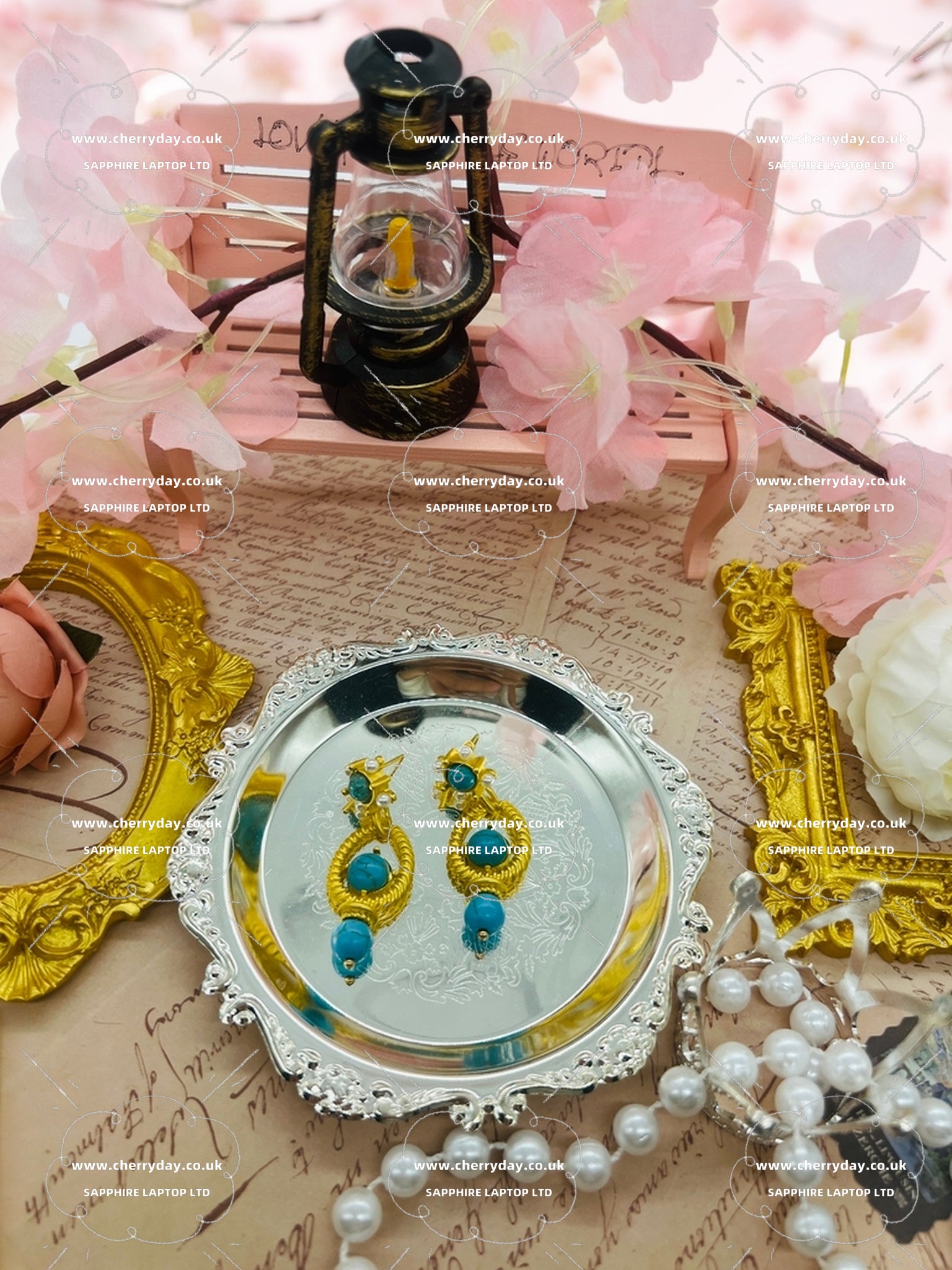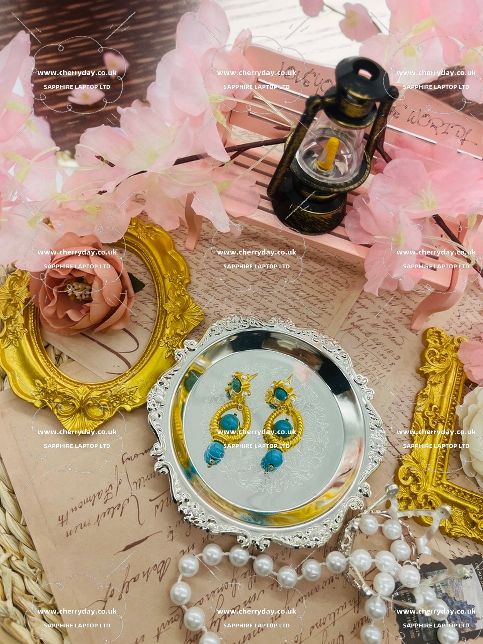 - Radiant Blue Turquoise: The core of these earrings features a stunning shade of blue turquoise, known for its calming prosperity and ability to enhance personal expression.