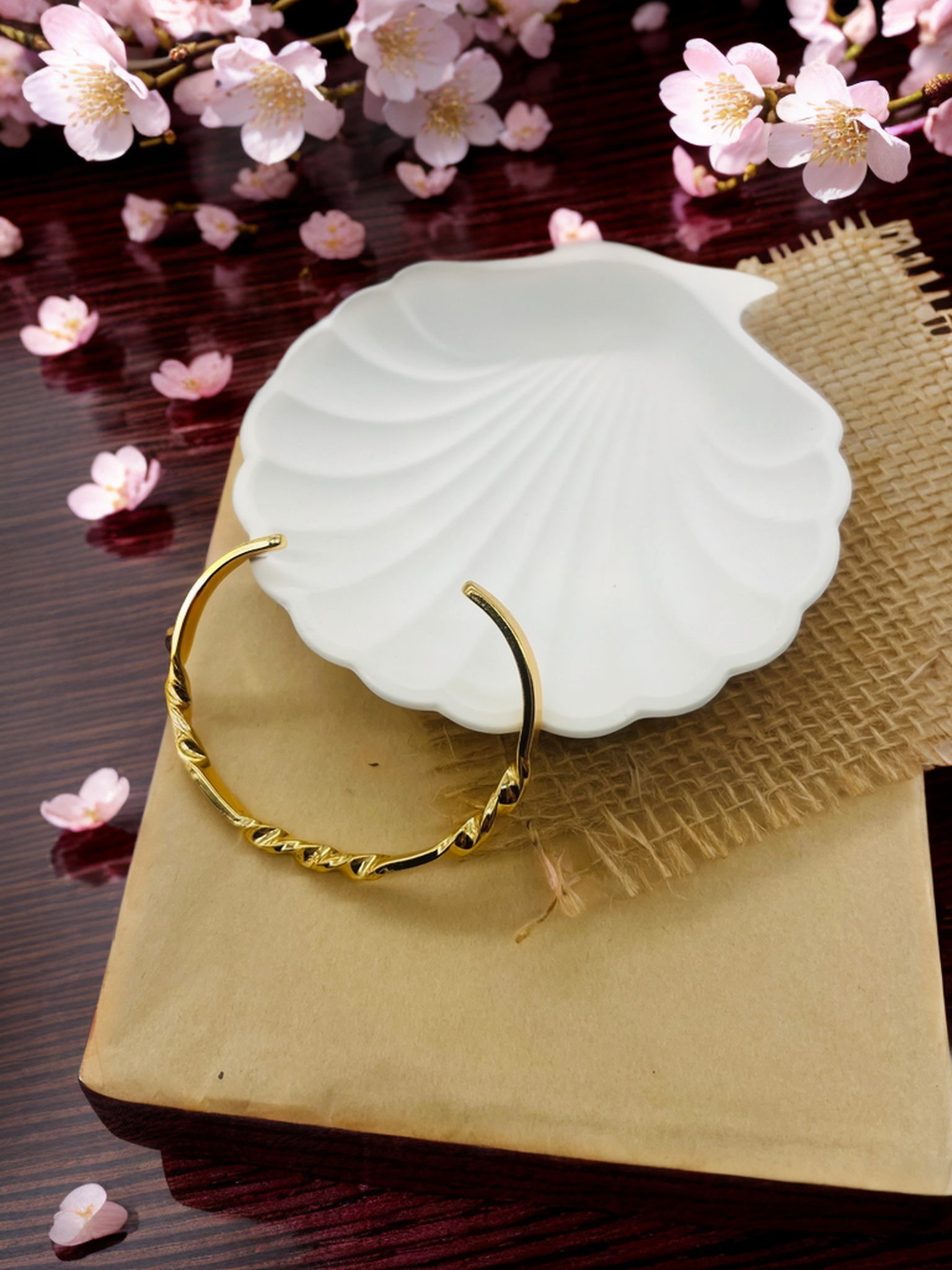 Experience the beauty of the ocean with our Gold Irregular Pattern Bracelet! Its irregular ripple shape and quivering pattern showcase the designer's unique thinking. Made with high-quality gold, this bracelet adds an elegant touch to any outfit. Let the golden water waves ripple on your hand!