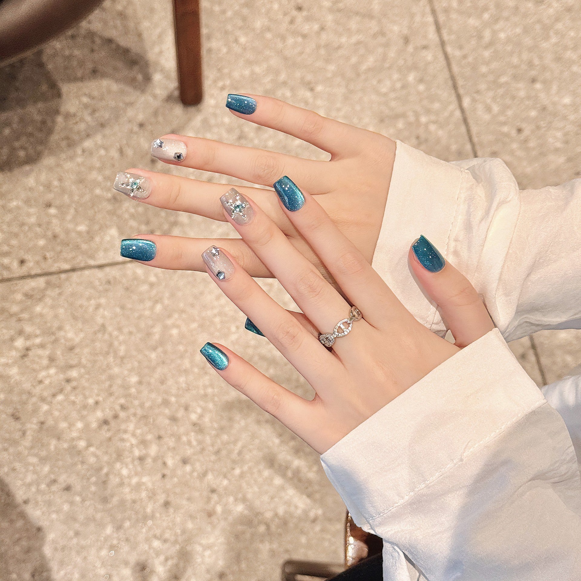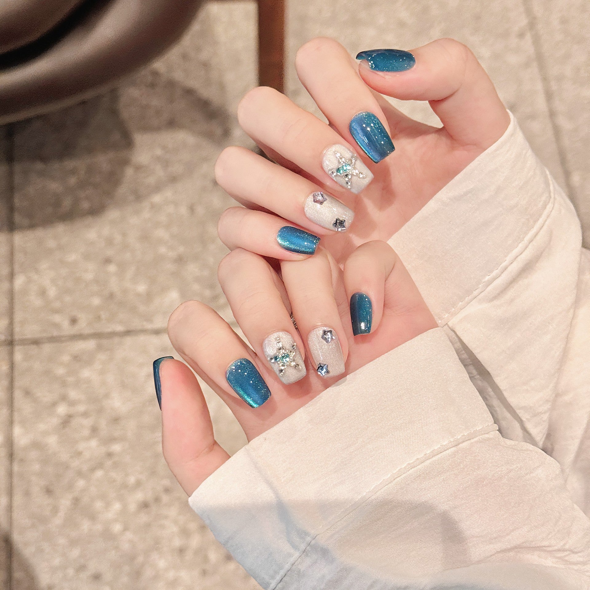 Nails 268-Klein Blue Ice Clear Cat Eye Nail Art
