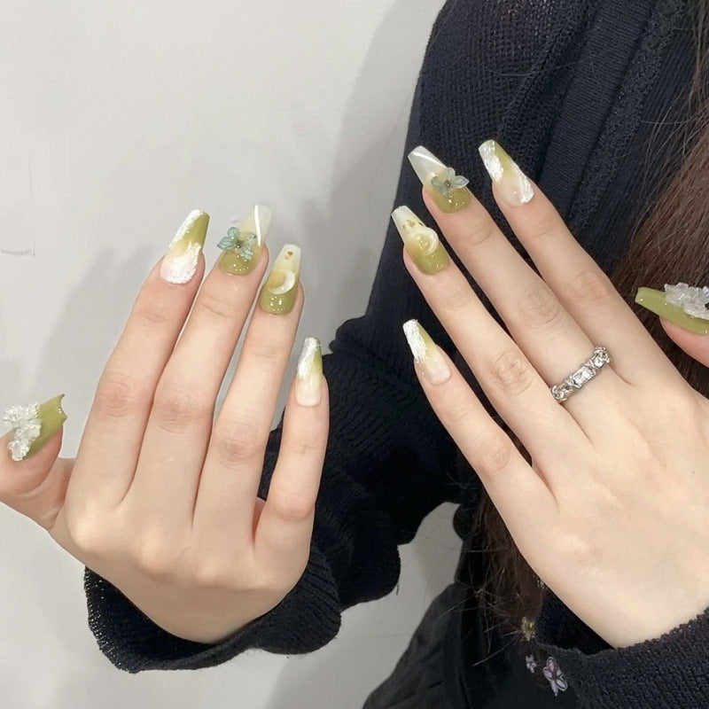 Add a touch of magic to your nails with the Summer Halo Crystal Butterfly Nail Art. Sparkling crystals and delicate butterfly designs create a playful, enchanting look perfect for sunny days and warm nights. Easy to apply and sure to brighten your style, these nails bring a whimsical charm to any outfit. Let your fingertips flutter with summer vibes!