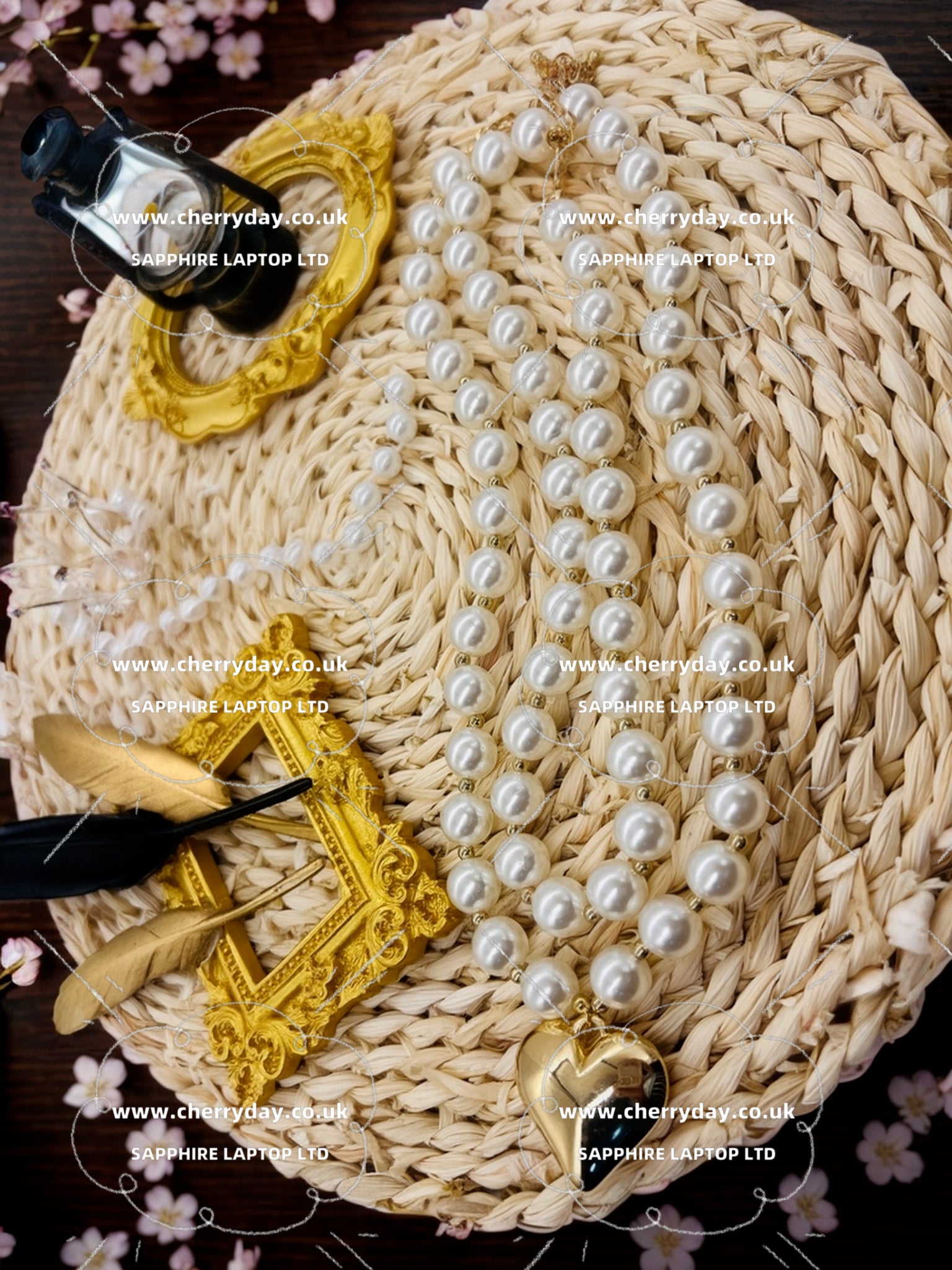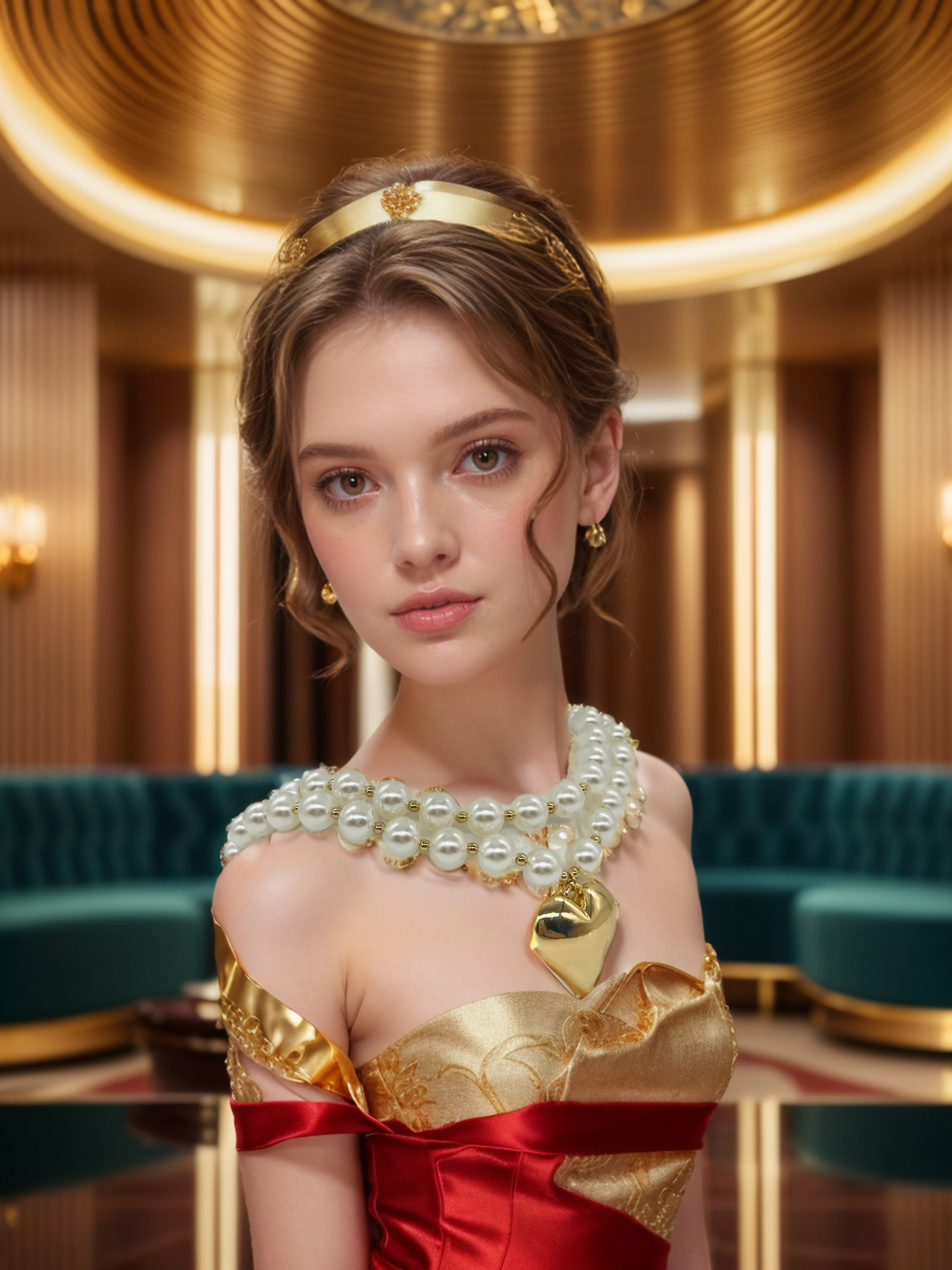 Enhance your elegant look with our Love double layers pearls necklace. Featuring a double layer of large pearls, this necklace is designed to drape a gold metallic heart for a regal touch. Elevate your style with this luxurious and glamorous piece.