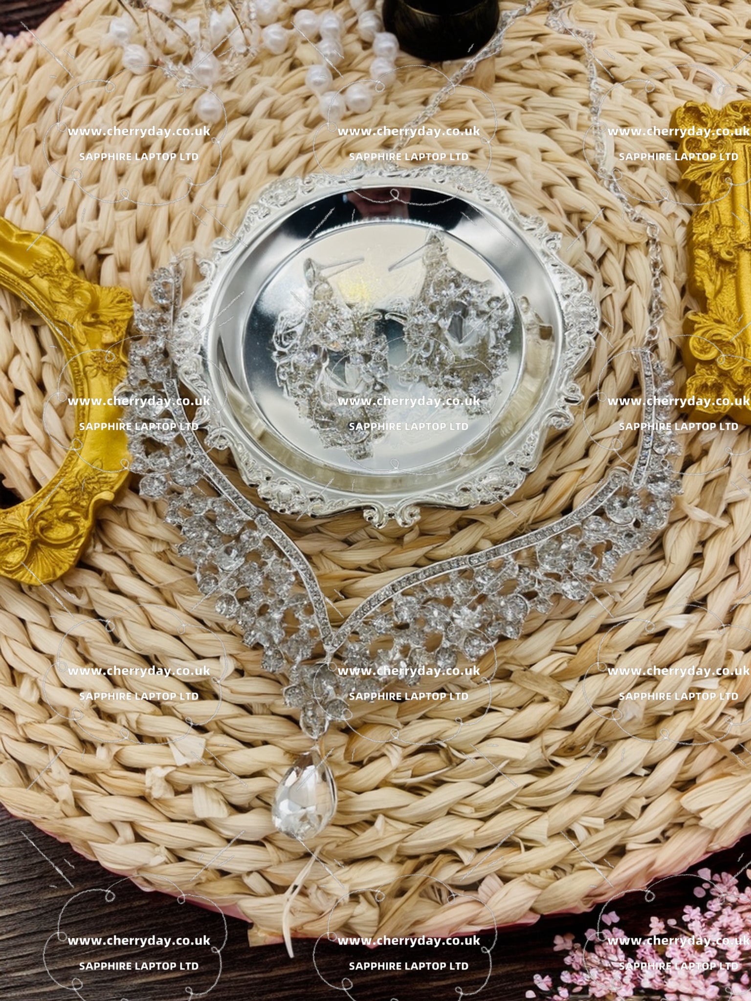 Add a touch of elegance to your outfit with our Wave rhinestone necklace & earrings set. The streamlined design creates a convergence that exudes a rich and noble aura. Perfect for special occasions or a classy everyday look. Set yourself apart from the crowd with our Wave rhinestone necklace & earrings set. With its sleek design and luxurious aura, you'll be the talk of any gathering. Perfect for adding a touch of class to any outfit, whether it's for a special event or just a typical day.