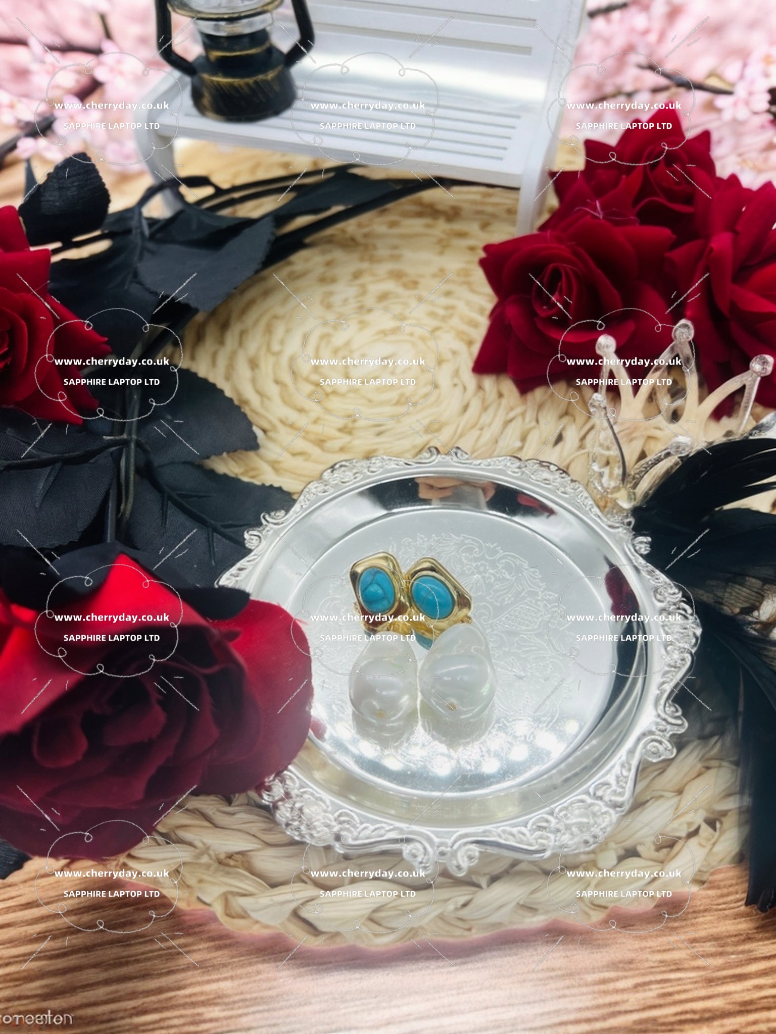 Elevate your style with our stunning Turquoise Pearl Earrings. Made with malachite green gemstones in a teardrop shape, these earrings are embellished with natural, original pearls for a high class look. Perfect for any occasion, these earrings are a must-have for any jewellery collection. Add a touch of elegance and sophistication to your outfit today!