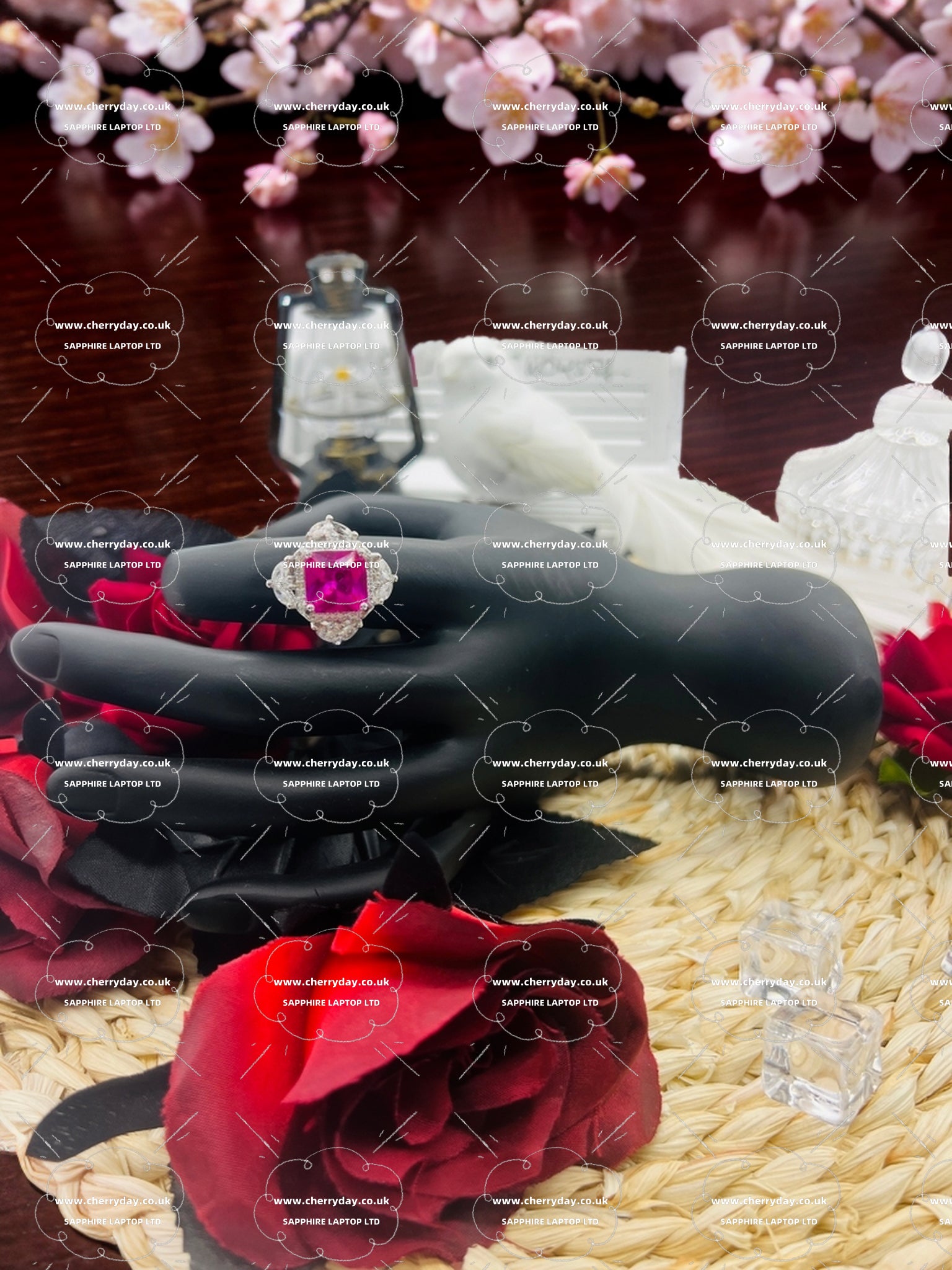 Set with crystal clear pink square diamonds and surrounded by stunning square latticework embellishments, this piece is a true statement maker.