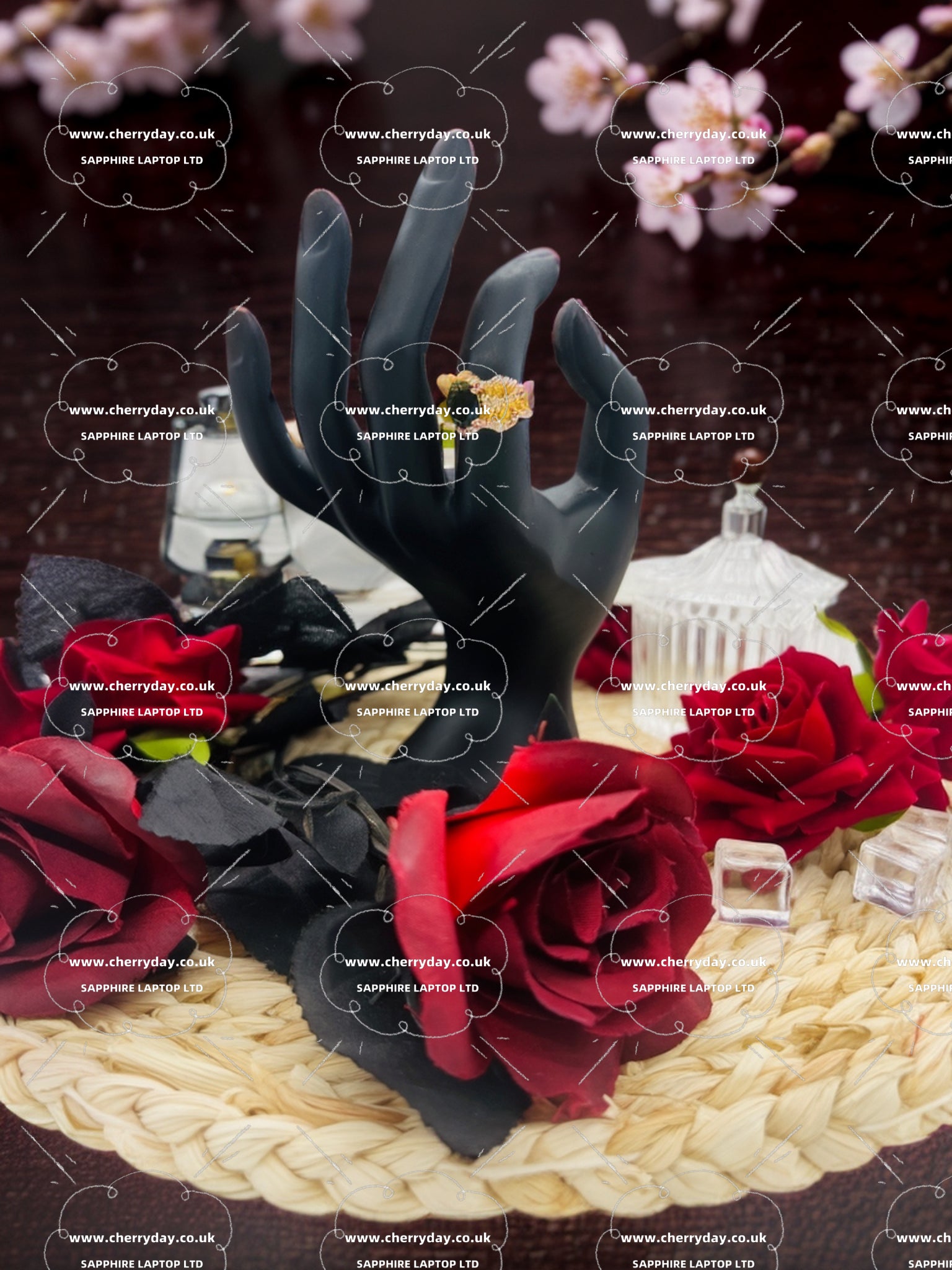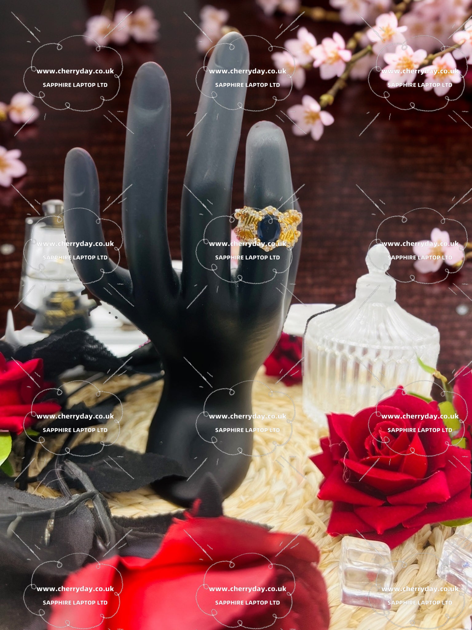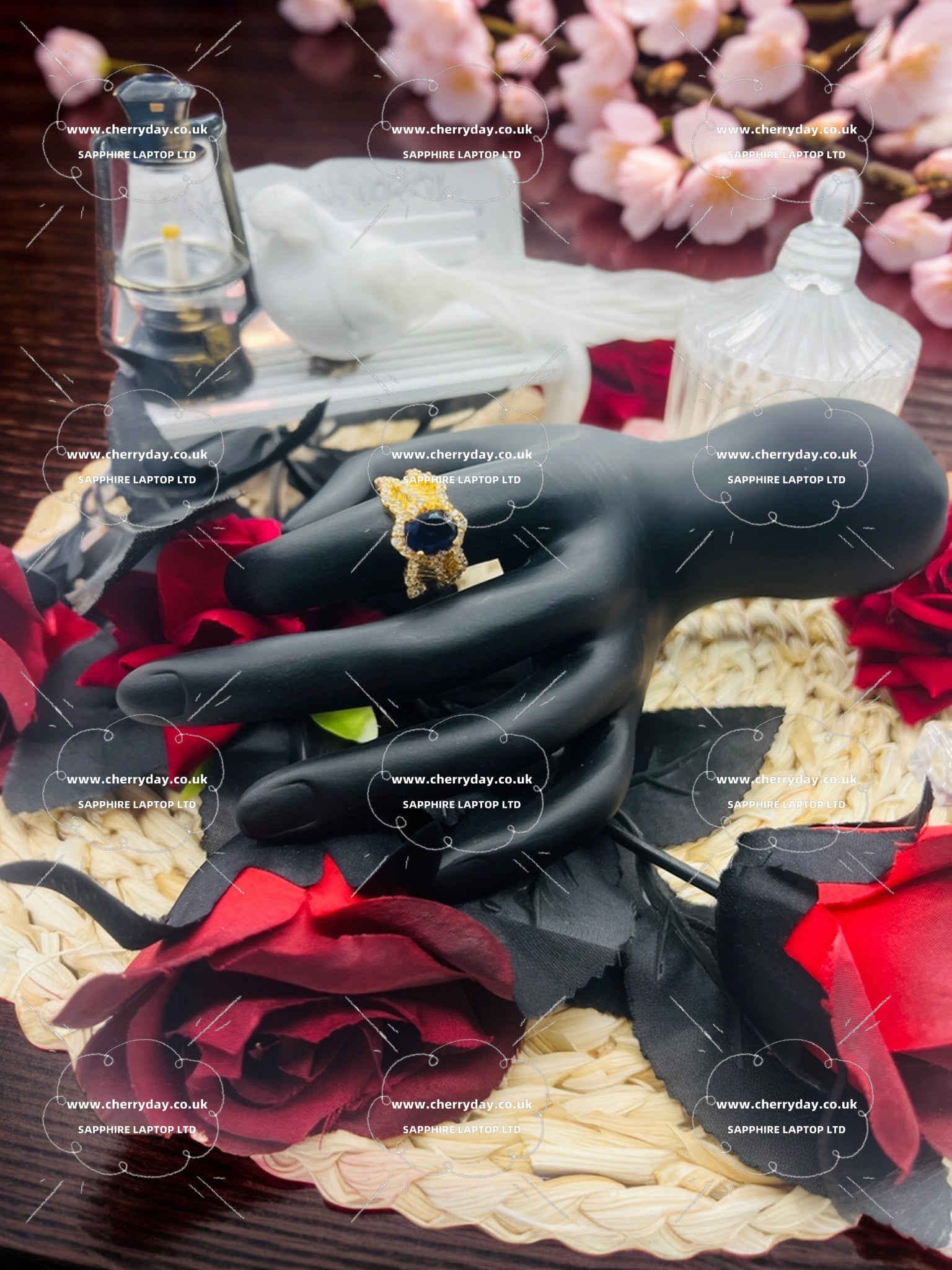 Adorn your finger with the breathtaking Wings of Angel sapphire gold ring. Its stunning blue oval stone is elegantly set in a gold wavy linear lace, creating a truly captivating and beautiful piece. Let this ring be your new statement of style and sophistication!