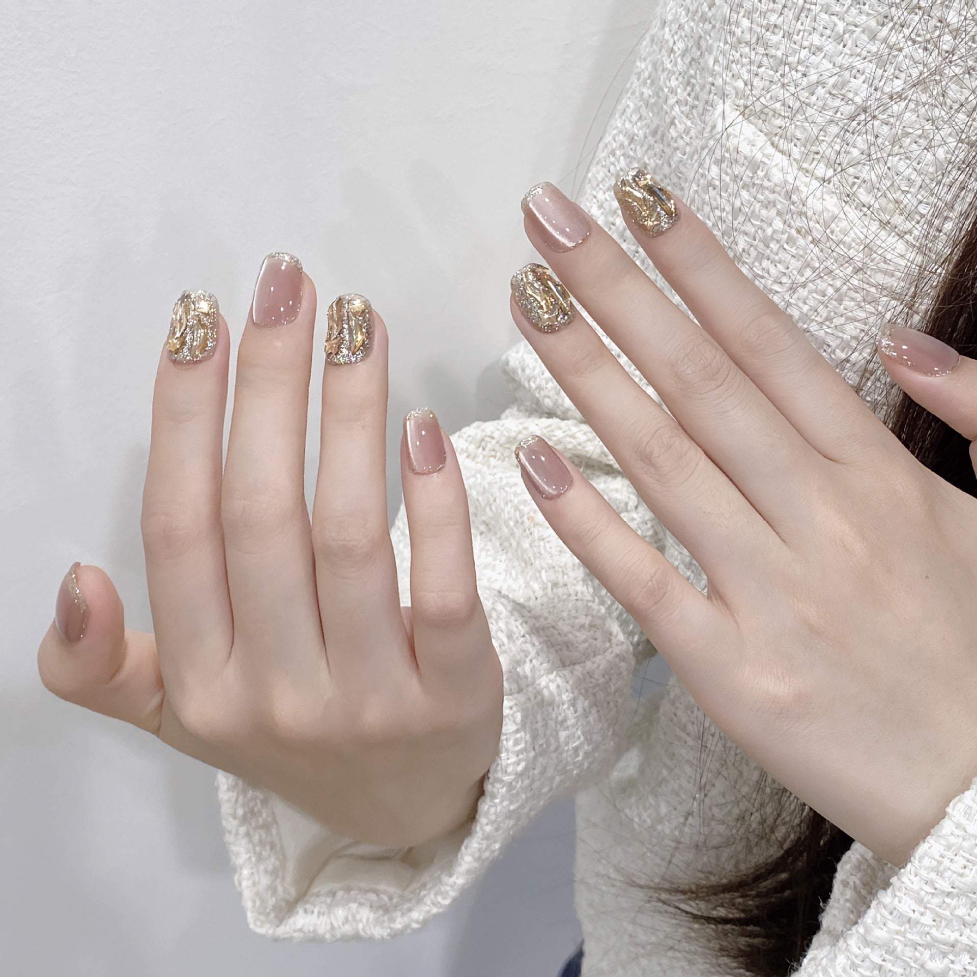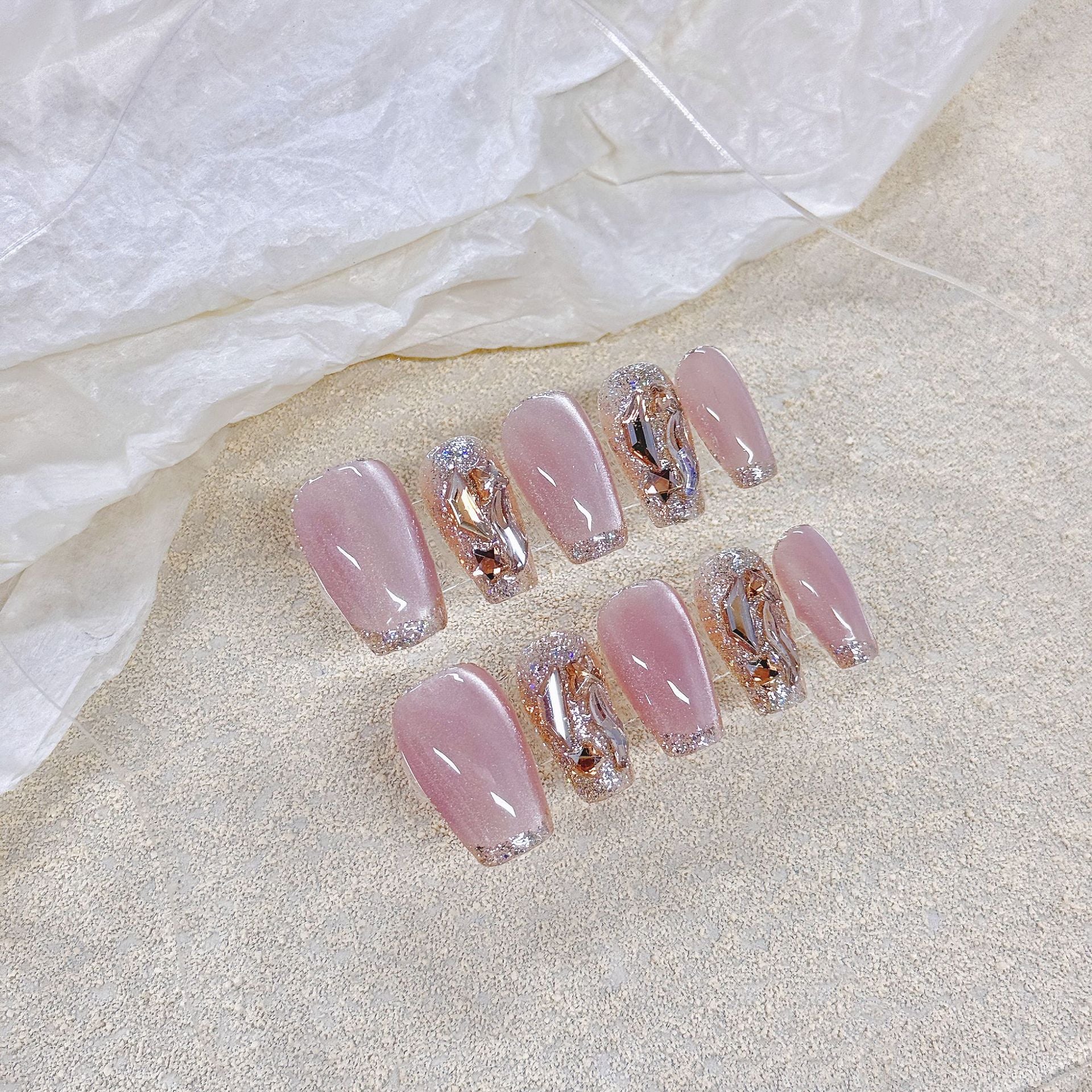 Nails 300-Pink Sequin Pearlized Cat Eye Nail Art