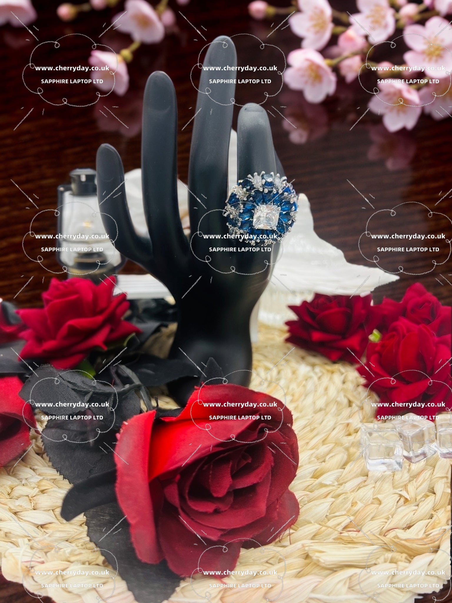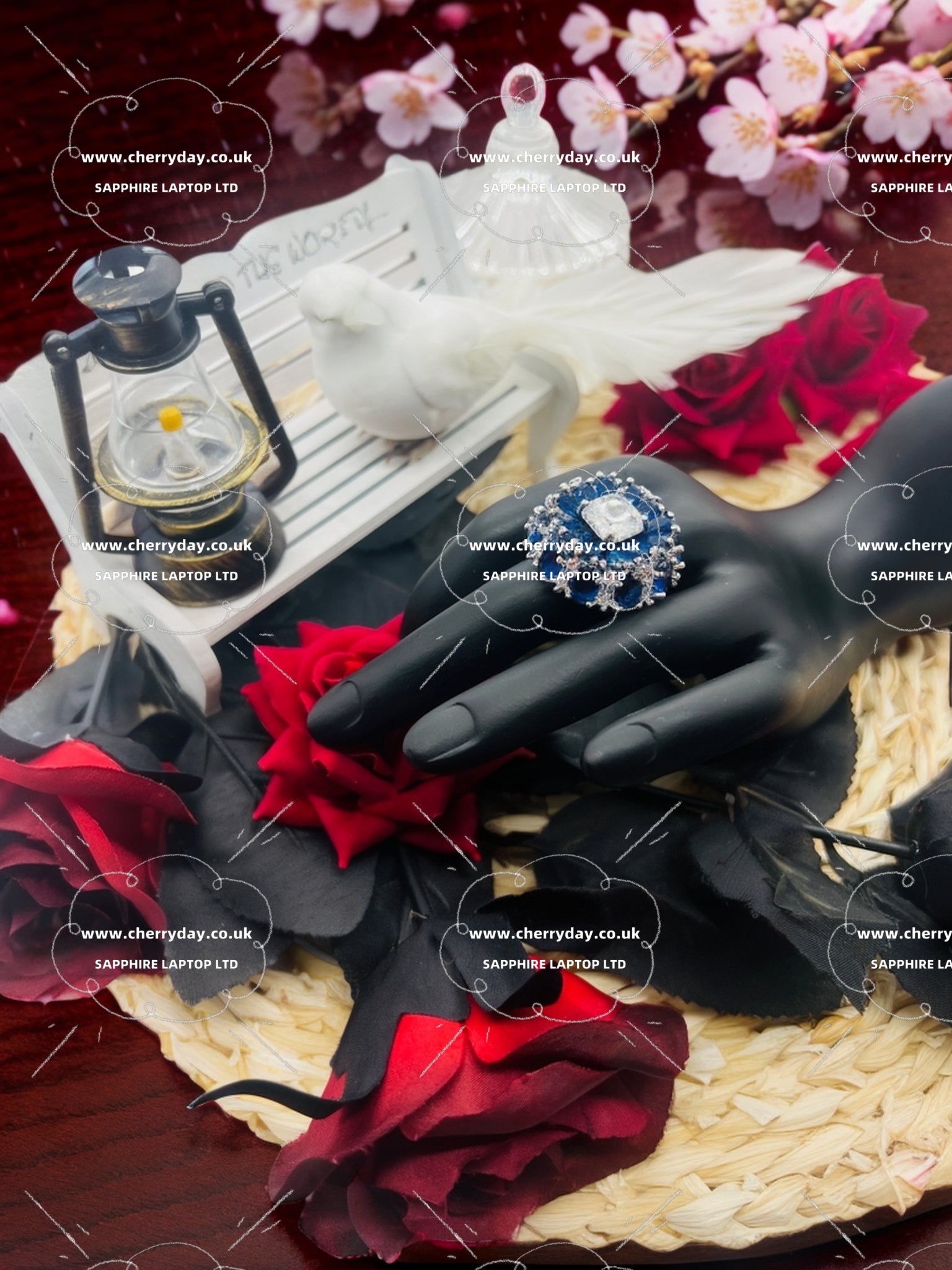 Indulge in luxury with our Royal Sapphire Carved Silver Ring. Featuring sapphire and silver rhinestones, this designer piece exudes elegance and class. Available in two sizes, it's the perfect accessory for a romantic evening by the Thames. Add a touch of sophistication to your look today! Complete your elegant look with the Royal Sapphire Carved Silver Ring. The combination of sapphire and silver rhinestones creates a stunning piece that will elevate any outfit, making it the perfect accessory for a romantic evening by the Thames. Available in two sizes, this designer ring adds a touch of luxury and sophistication to your ensemble. Upgrade your style and indulge in ultimate elegance today.