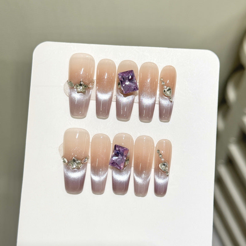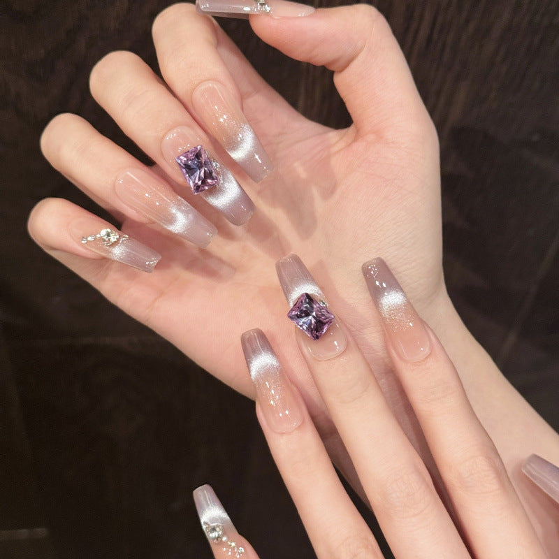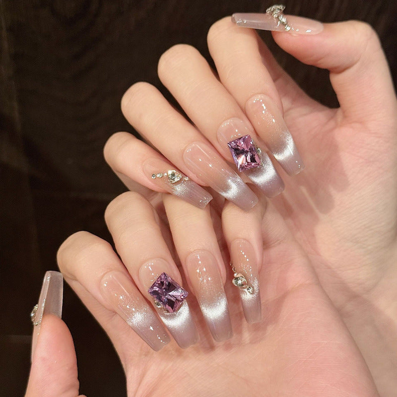 Nails 276-Pale Rose Blush Smile French Cat Eye Manicure