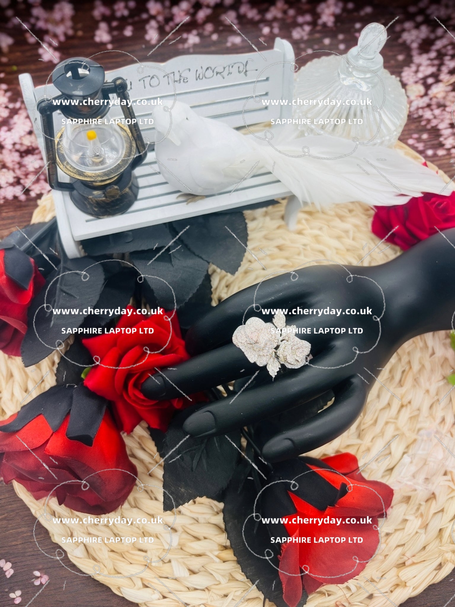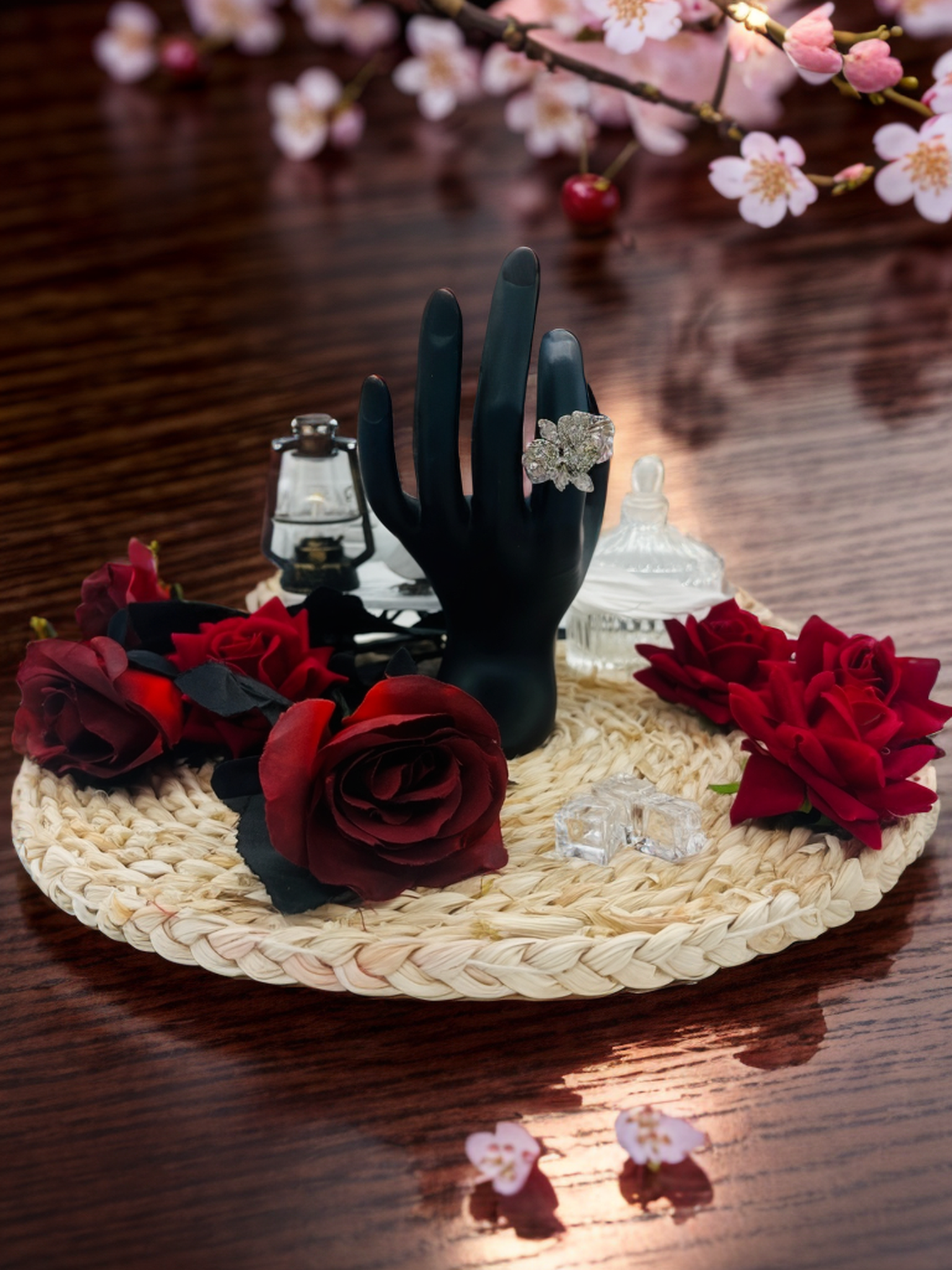 Add a little fancy flair to your jewellery collection with our Twinset flowers ring! Crafted with fine silver and delicate diamond details, this whimsical piece features a double bouquet of flowers. The stamen even includes tiny pink diamonds for a touch of subtlety. Aura!