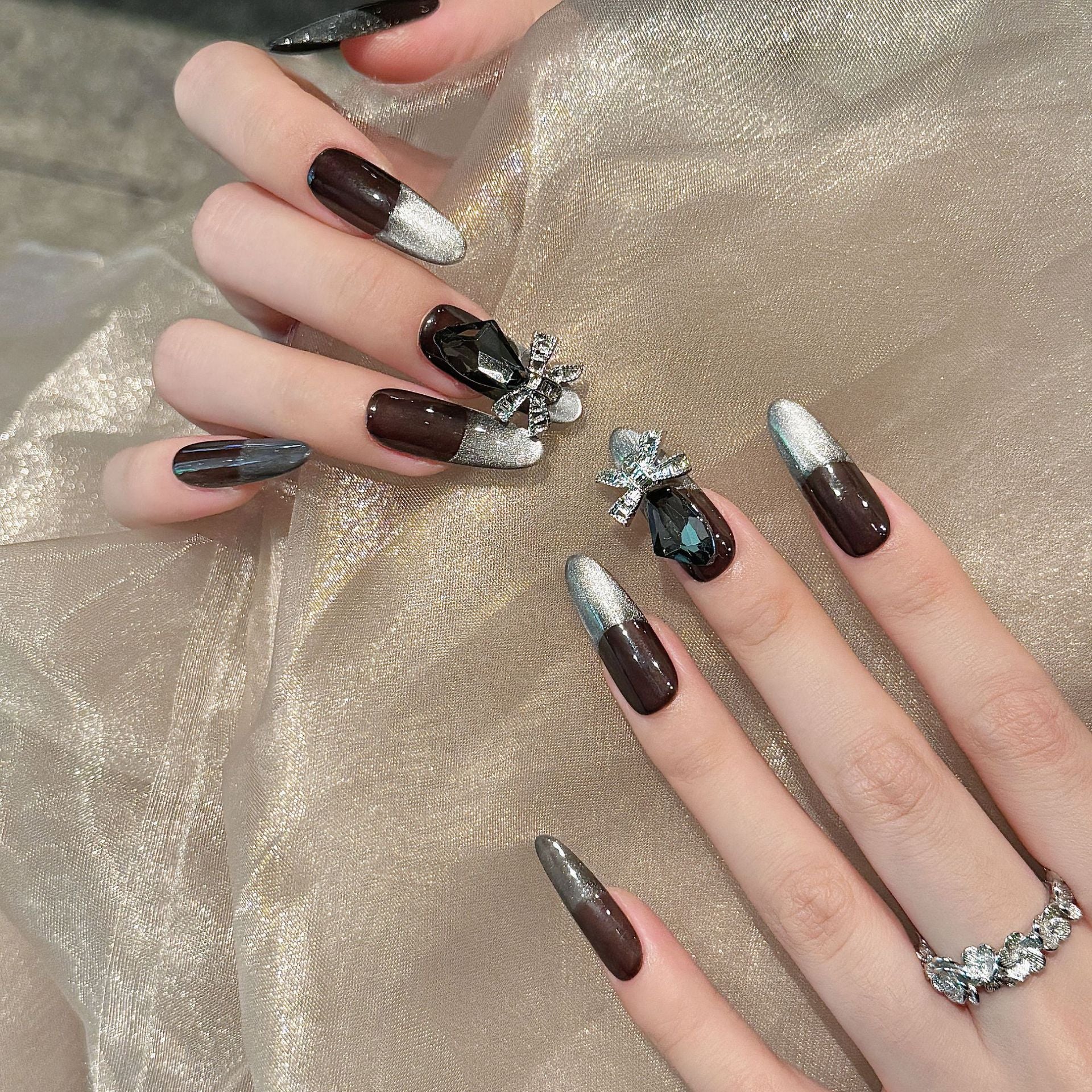 Nails 032-Frozen War Song Cyberpunk Dark Black Nail Art