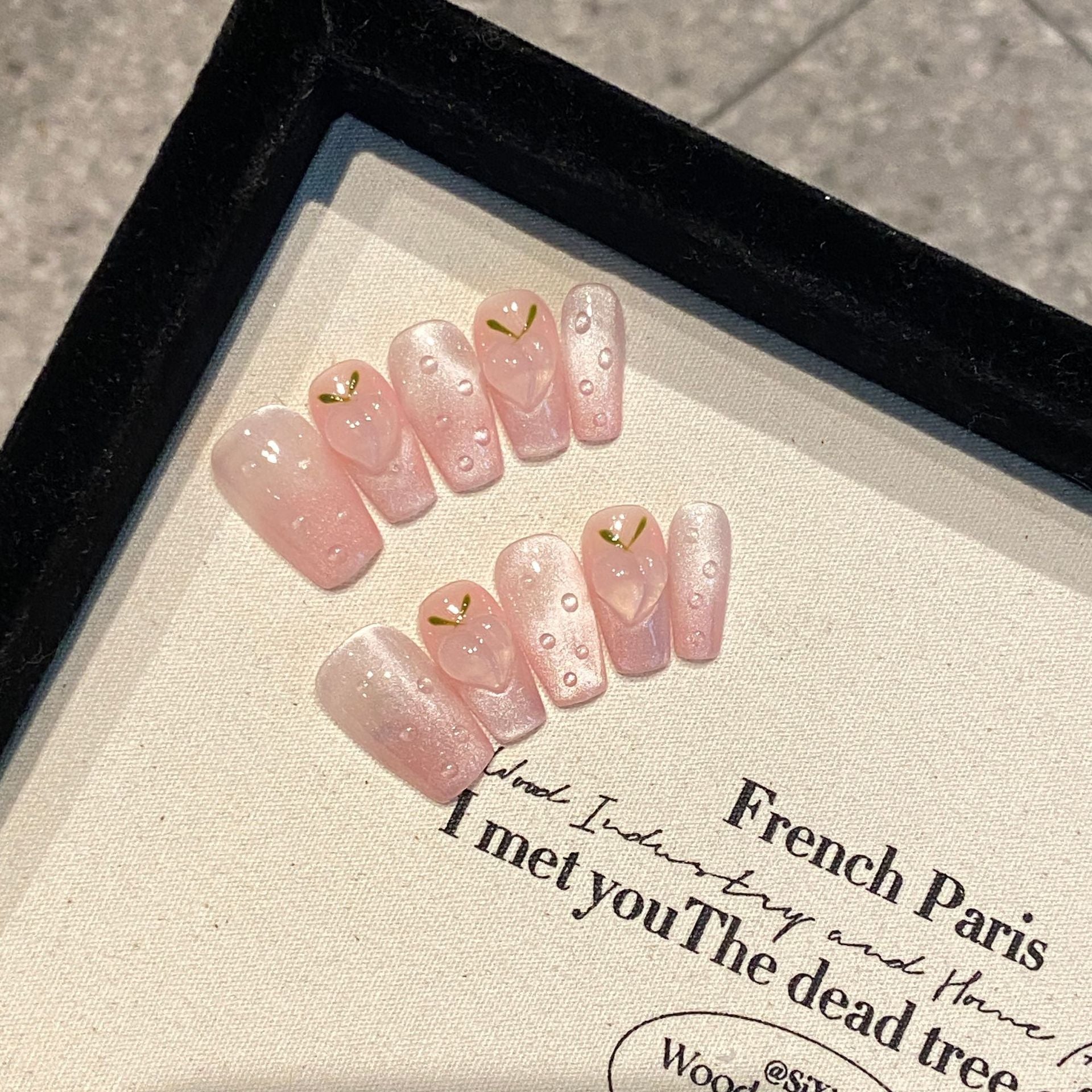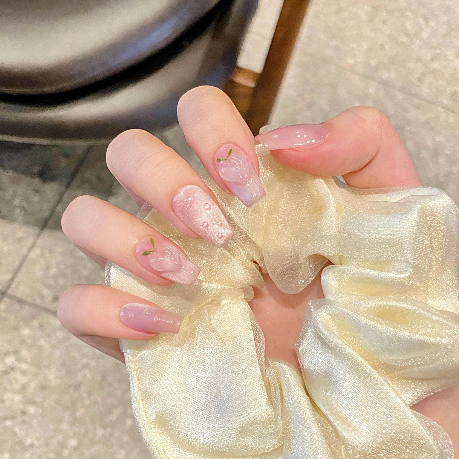 Elevate your manicure with these stunning Ice Translucent Peach Blush short nails. The delicate girly pink hue creates a soft, feminine look that complements any outfit. These ready-to-wear nail tips save you salon time while delivering professional-quality results. Perfect for special occasions or adding a touch of elegance to your everyday style. Transform your hands instantly with these eye-catching, on-trend nail accessories.
