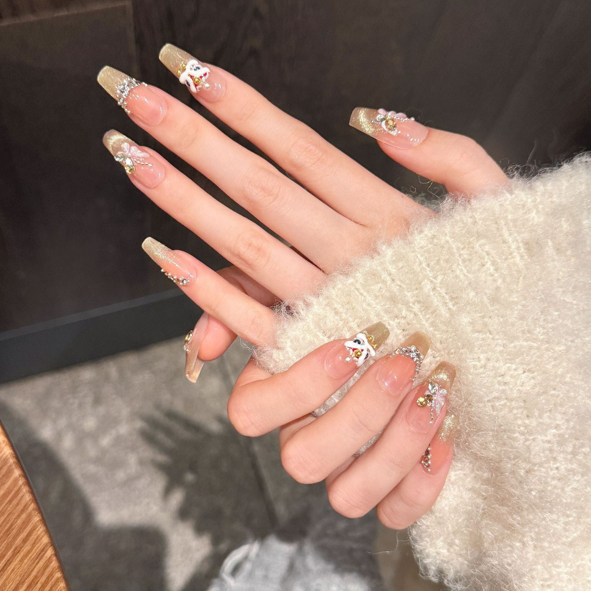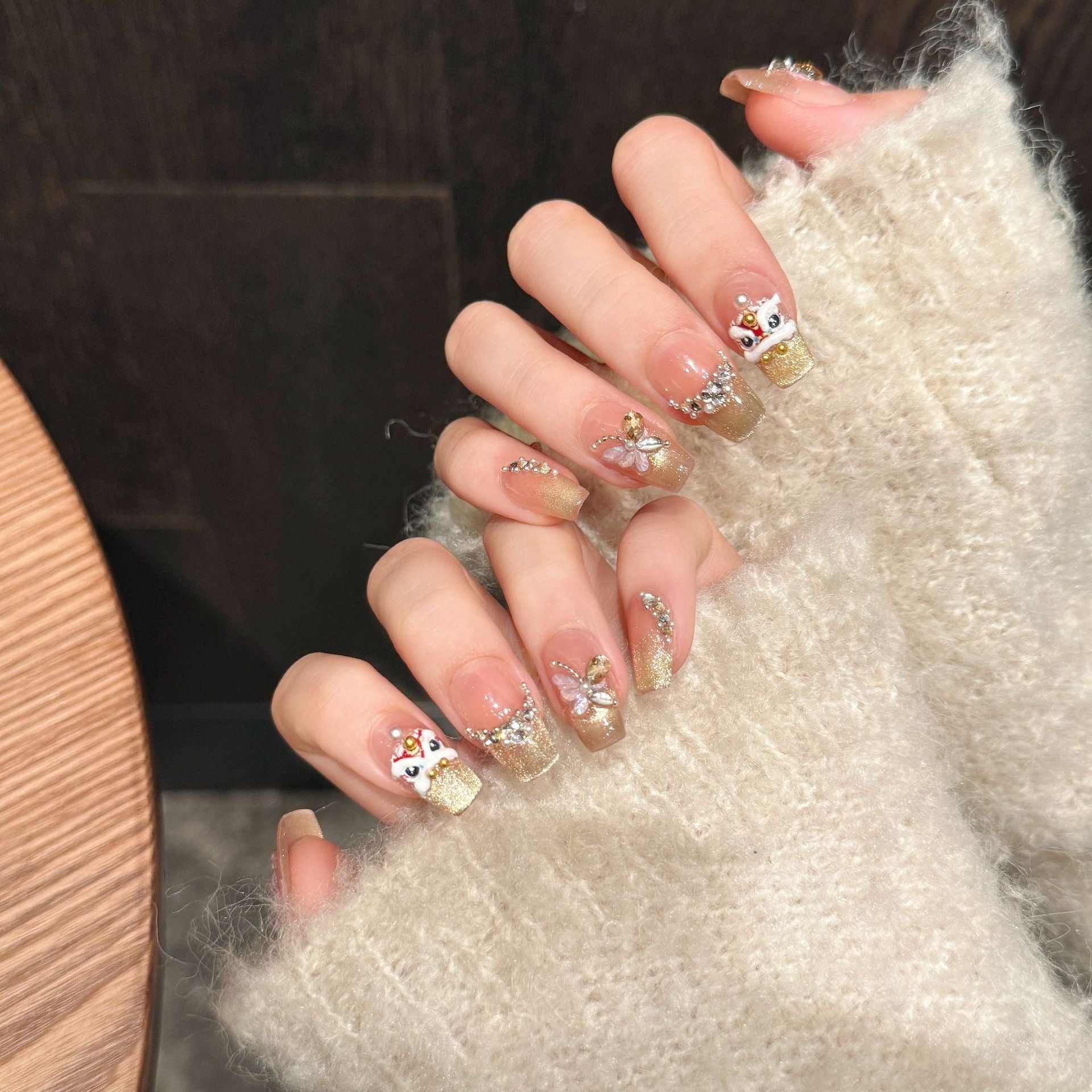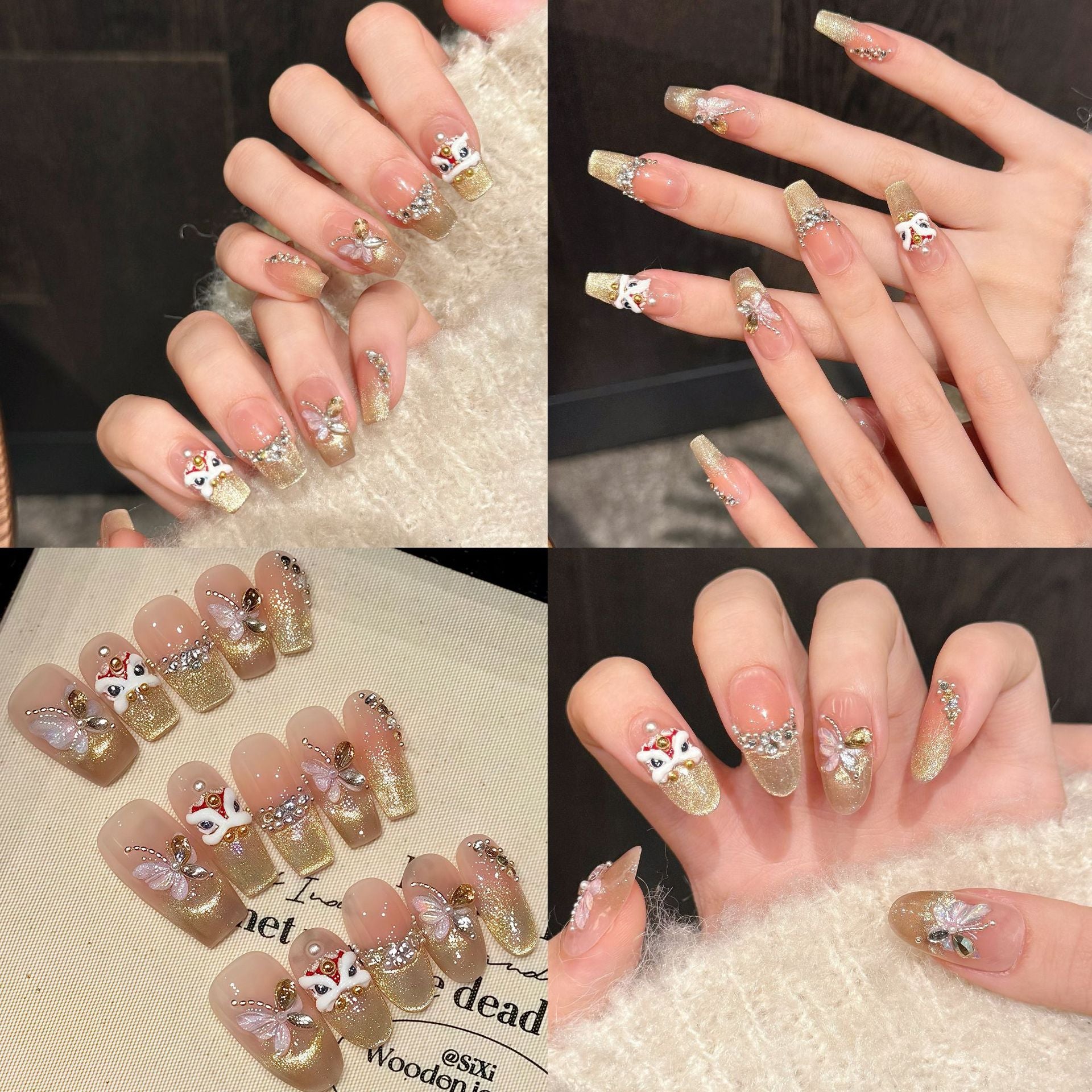 Add a dazzling touch to your nails with this playful Hot Stamping Nail Art set featuring a majestic lion, lucky fortune symbols, and delicate butterflies. Accented with shimmering gold and crushed diamonds, it brings sparkle and charm to every manicure. Perfect for turning heads and expressing your unique style with a bit of fun flair!